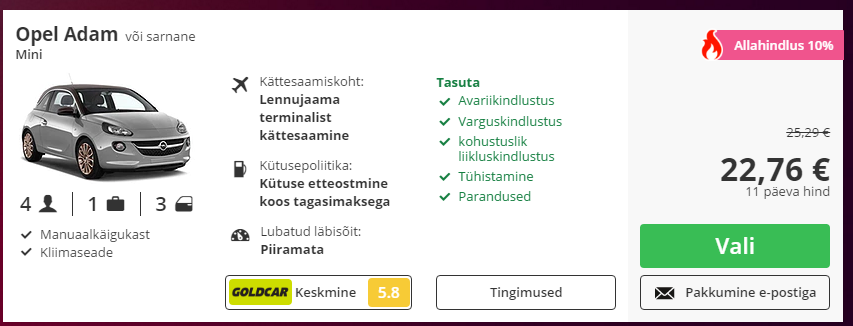 Autorent lennujaamast 11 päevaks alates 23 eurost. Vaata SIIT