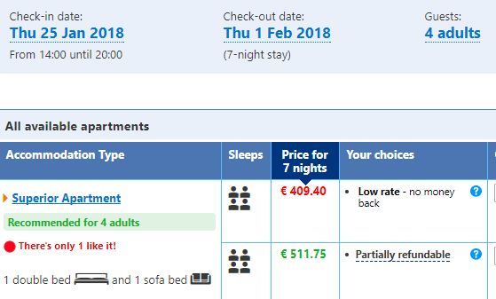 Näidisbroneeringud neljale (25.01 – 01.02)