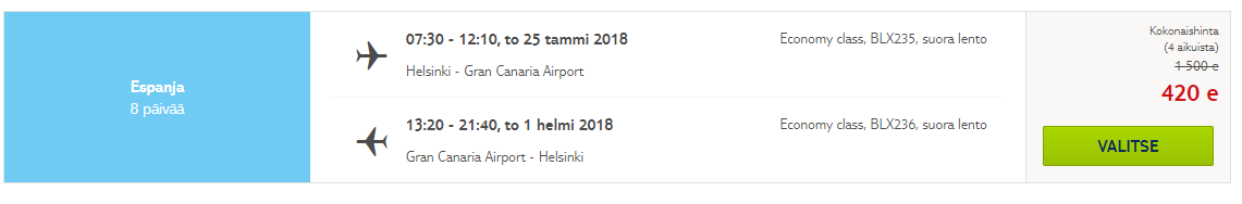 TUI pakub Helsingist lennupileteid järgmiseks nädalaks Gran Canariale 105 euroga!