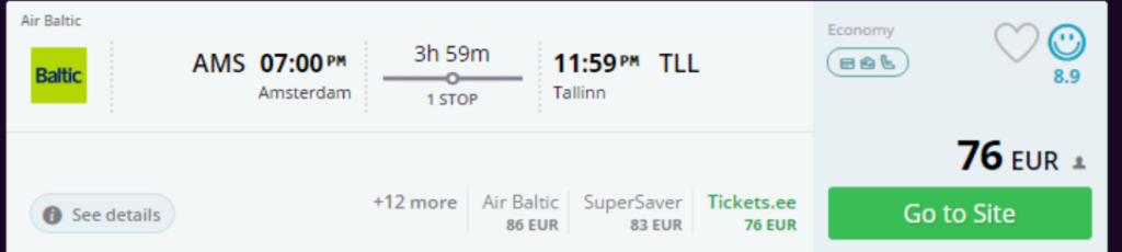 - Broneeri lennupiletid (11. märts 19:00 – 23:59) Amsterdam – Tallinn SIIT (76€)