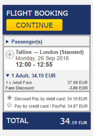 12.10 Tallinn – London (STN) 34€ [12:00– 12:55]