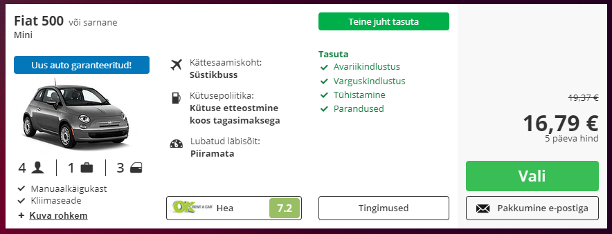 Menorcal on autorent väga soodne. Näiteks 13-18. oktoober algavad 5 päeva hinnad 16,79 eurost. Vaata SIIT