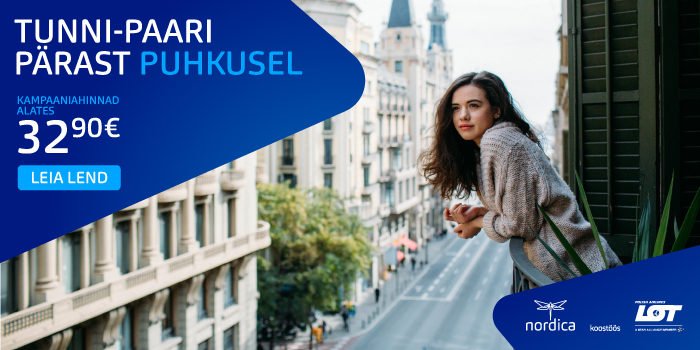 Selle nädala lõpuni kehtivad Nordica kampaaniahinnad mitmetesse Euroopa linnadesse, mille raames hinnad algavad alates 32,9 eurost.