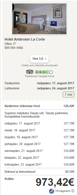 - 17 – 24.08 (448 SEK ~ 47€ inimese kohta)