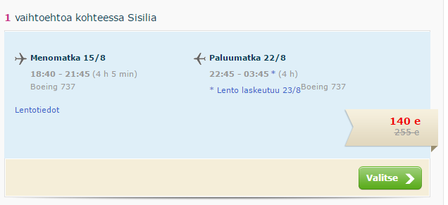 Reisikorraldaja TUI pakub Helsingist hea hinnaga edasi-tagasi otselendu Sitsiilia saarele – edasi-tagasi lend Helsingist 140 eurot!