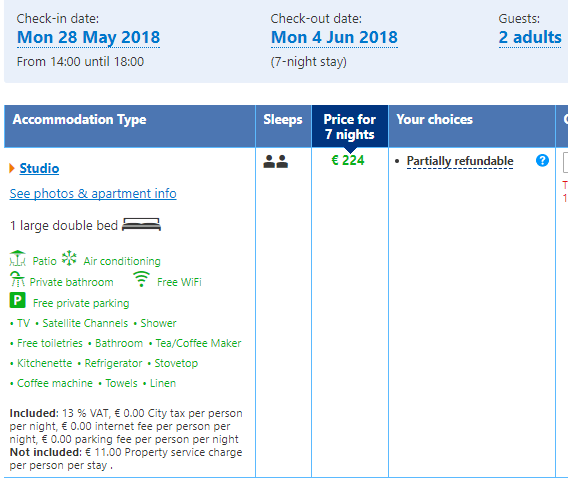 Näiteks saab hea hinnaga 28. mai – 4. juuni ööbida külaliskorteris Vlatko, mis asub rannast 2-minutilise jalutuskäigu kaugusel. Stuudiokorteri hind 7 ööks tuleb 224 eurot ehk 112 eurot inimese kohta. Vaata lähemalt SIIT