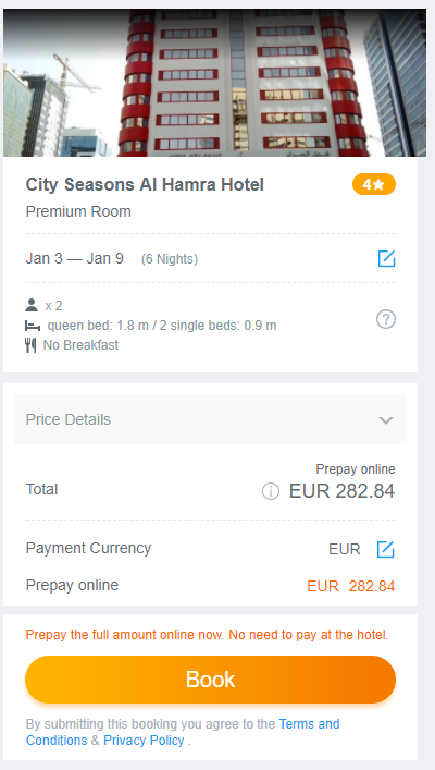 NB! Abu Dhabis võib hotellis kohapeal lisanduda erinevaid makse (nt turismimaks), mis ei kajastu broneerides. Lisaks ei ole kõikides hotellides lubatud tuba jagada mehel ja naisel, kes ei ole abielus. Enne broneerimist soovitame eelpool väljatoodud info teenusepakkujalt (broneerimiskeskkond) või hotellist üle küsida.