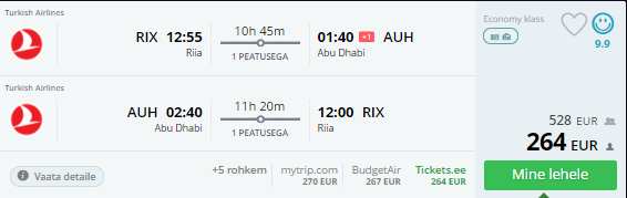 Turkish Airlines lennutab hea hinnaga Riiast Abu Dhabisse hinnaga 267 eurot!