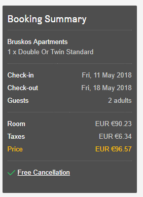 Perioodil 11-18.05 saab soodsalt ööbida 3-tärni hotellis Bruskos Apartments, mis asub Kavoses. Kahene tuba näiteks perioodil 11-18.05 maksab ca 90 eurot ehk 45 eurot inimese kohta öö! Broneeri hotell SIIT