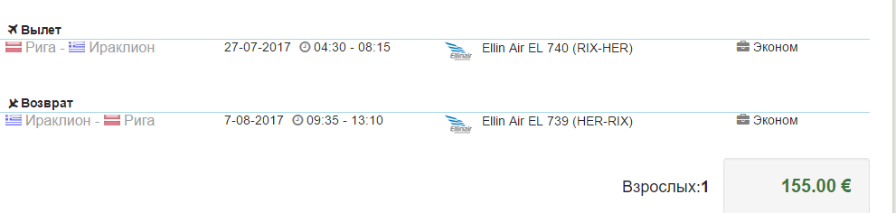 Näidiskuupäevad lendamiseks (Riia – Heraklion – Riia):
