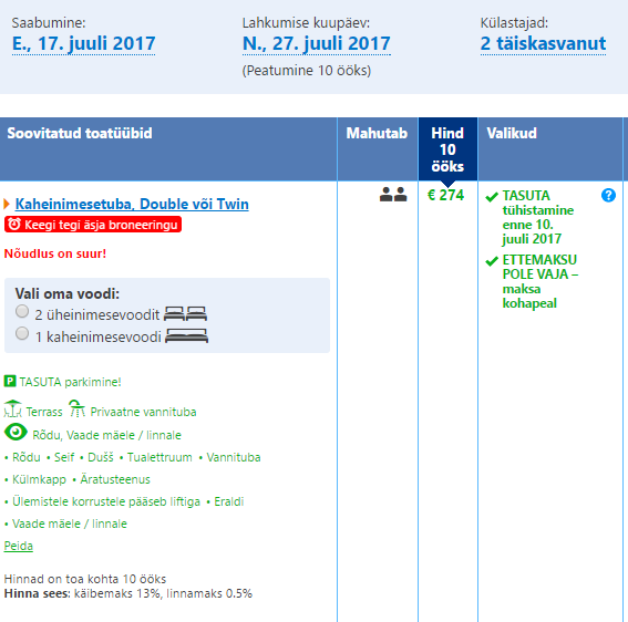 Hind 11 öö kohta tuleb 429 eurot.