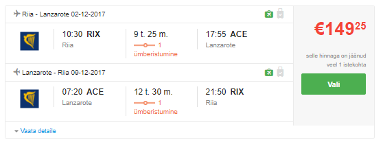 Kombineerides erinevaid lende saab soodsalt lennata talvel Riiast Lanzarotele.
