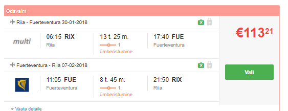 Kombineerides erinevaid lende on võimalik lennata talvel Riiast ühe ümberistumisega Kanaari saartele. Edasi-tagasi lennud Riiast algavad 113 eurost! Head hinnad tulenevad erinevate Musta reede kampaania pakkumistest, mis lõppevad täna, seega huvi korral tasub kiirustada!
