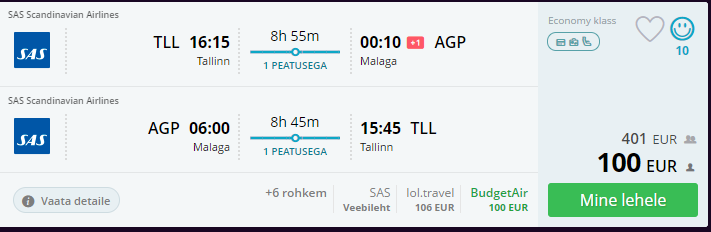 Lennufirma SAS pakub väga soodsaid lennupileteid kevadeks ja suveks Lõuna-Hispaaniasse.