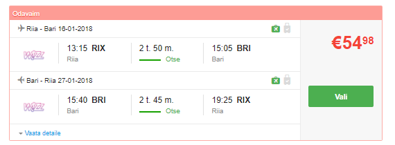 Näidiskuupäevad lendamiseks Riia-Bari-Riia (kliki linkil):