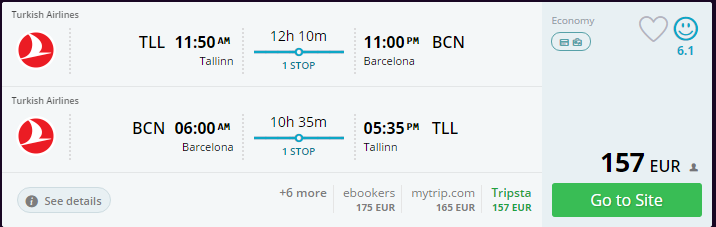 Lennufirma Turkish Airlines pakub väga soodsaid lennupileteid Barcelonasse. Edasi-tagasi lennupiletid algusega Tallinnast 157 eurot! Reisidiilide lugejad valisid Barcelona aasta reisilinnaks 2016. Pileteid saadaval aprillist oktoobrini.