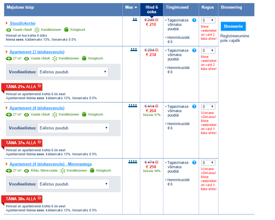 Suure valiku majutuspakkumisi leiad hinnavõrdlusportaalist Hotelscombined