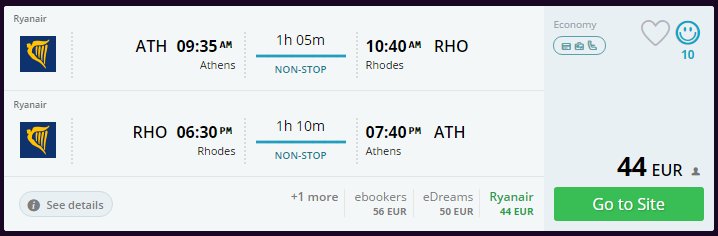 Ateena – Rhodos – Ateena 44€ (NB! lend algusega 09:35)