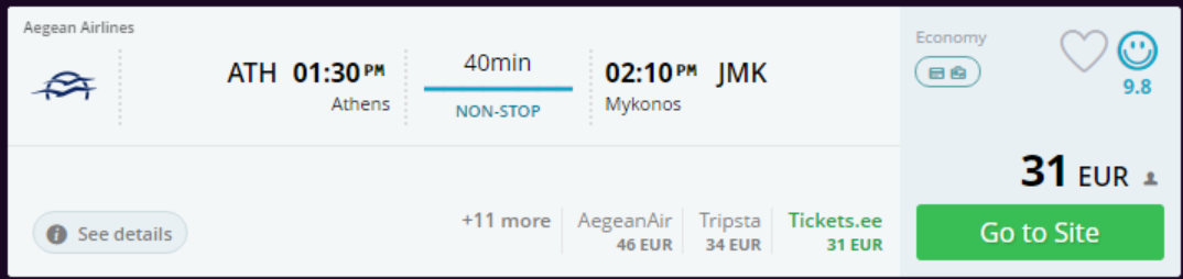 Ateena – Mykonos (34€) [13:10- 13:55]