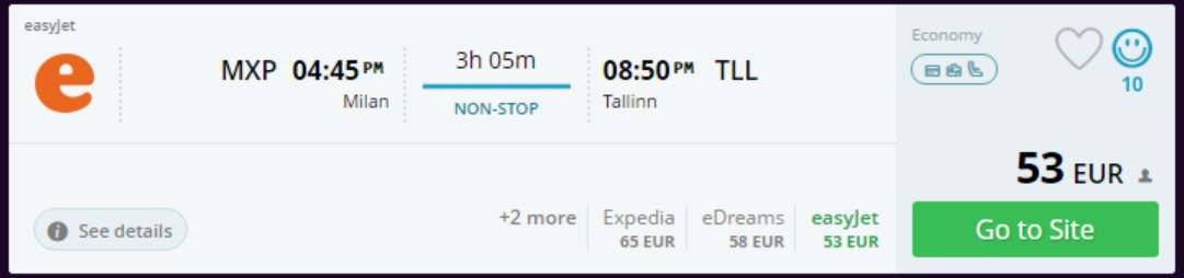 Milan – Tallinn (53€) [16:45 – 20:50]