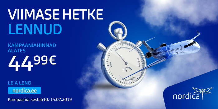 Lennufirma Nordica pakub häid hindasid viimase hetke lendudele. Hinnad algavad 44,99 eurost ots. Soodsad hinnad on lendamiseks saadaval juba juuli keskpaigast.