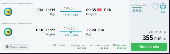 Ukraine International Airlines pakub soodsaid lennupileteid Riiast Tai pealinna, Bangkokki hinnaga alates 342 eurost!