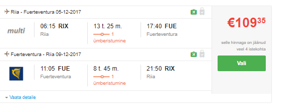 Kombineerides erinevaid lende on võimalik lennata Riiast ühe ümberistumisega Fuerteventura saarele. Edasi-tagasi lennud Riiast algavad 112 eurost!