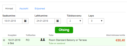 Näidiskuupäevad mugavalt broneerimiseks: