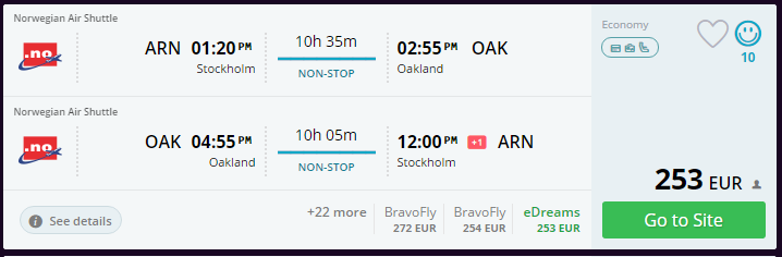 - Broneeri piletid suunal Stockholm – San Francisco – Stockholm (2. mai kell 13:20 väljalend, tagasi jõuab 14. mai kell 12:00) SIIT (253€) NB! Hinnad on tõusnud!
