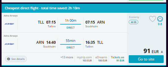- Broneeri pilet suunal Tallinn – Stockholm – Tallinn (2. mai kell 07:15 – 07:15, tagasilend 14. mai kell 14:40– 16:35) SIIT (71€) NB! Hinnad on tõusnud!