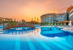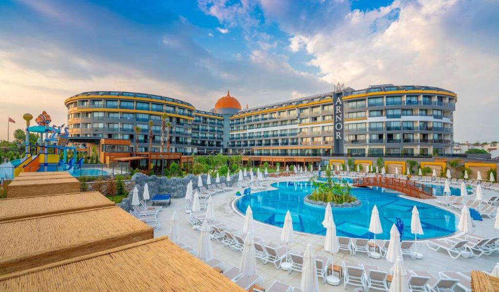 Arnor De Luxe Hotel & Spa on suurepärane valik neile, kes hindavad 5-tärni kvaliteeti ja kaasaegset disaini. See 2020. aastal avatud hotell asub vaid ligi kilomeetri kaugusel Side ajaloolisest vanalinnast, pakkudes ideaalset asukohta nii rannamõnude kui ka kultuuriliste jalutuskäikude nautimiseks. Hotelli südameks on avar basseiniala koos põnevate veeliumägedega, samas kui jahedamateks õhtuteks on saadaval stiilne sisebassein. Täielikku lõõgastust pakub kõrgetasemeline spaa-keskus koos sauna ja traditsioonilise Türgi saunaga, mis on kujundatud just tänapäevast mugavust silmas pidades.