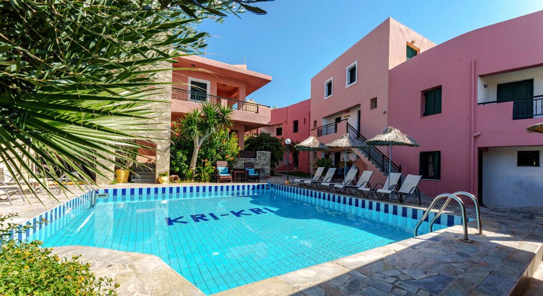 Kri-Kri Village pakub apartmentstiilis majutust vaid 150 m merest rahulikumas piirkonnas. Hotellis on külastajatele avatud ka mõnus välisbassein ning terrass. Süüa saab teha toas asuvas kööginurgakeses. Heraklioni linn jääb hotellist ca 16 km kaugusele.