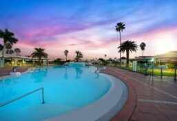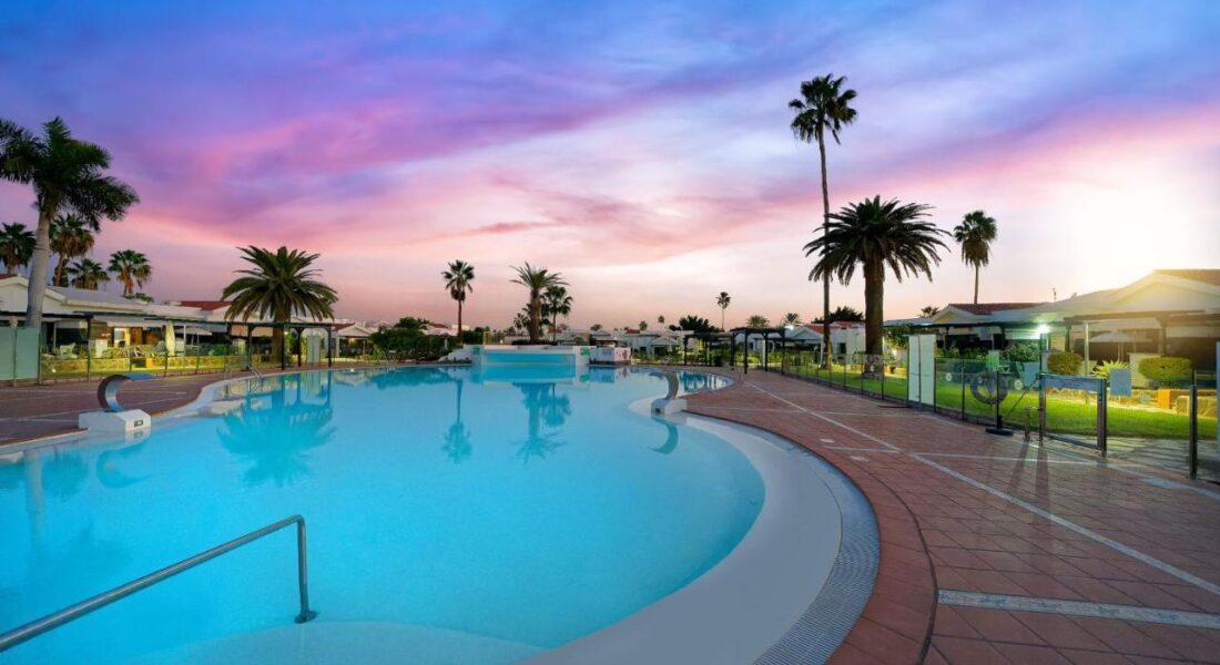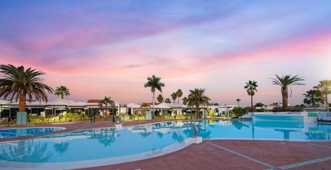 Antud paketi raames toimub majutus moodsas ja heade hinnangutega 3-tärni korterhotellis Maspalomas Lago Canary Sunset, mis asub tuntud kuurortlinna Maspalomase südames. Kõikides bangalo-tüüpi majakestes on olemas eraldi magamistuba, diivaniga puhkenurk, eraldi köögiosa koos einestamisalaga – sealhulgas külmkapp, pliit, praeahi, mikrolaineahi ning kõik muu vajalik toidu valmistamiseks. Hotelli läheduses asub ka mitmeid erinevaid poode ning toitlustusvõimalusi, lisaks on läheduses ka teema- ja veepark Holiday World, veekeskus Aqualand ning Palmitose park. Hotellil on lisaks ka oma suur basseiniala koos lamamistoolidega. Bungalo tüüpi majutustes puudub hommikusöök, kuna kohapeal on toiduvalmistamiseks kööginurk.