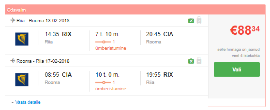 Kombineerides erinevaid lende saab soodsalt lennata talvel Riiast Rooma! Valentinipäev on 14. veebruaril, mis annab võimaluse veeta see romantilises Rooma linnas.