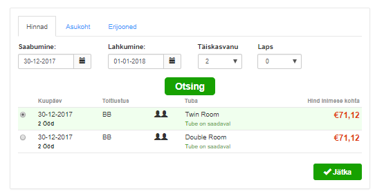 Näidisbroneeringud (30.12.2017 – 01.01.2018)