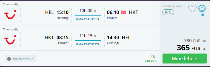 Reisikorraldaja TUI pakub Helsingist hea hinnaga lendu Phuketisse.