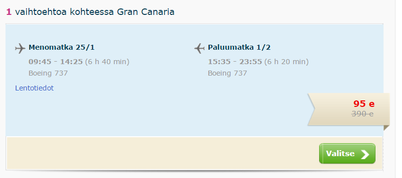 Gran Canarial saab antud perioodidel hea hinnaga ööbida majutusasutuses Apartamentos Guinea. Korteri hind 7 ööks tuleb 490 eurot ehk kahekesti ööbides 245 eurot inimese kohta ja kolmekesti ööbides ca 163 eurot inimese kohta. Vaata lähemalt SIIT (viimane korter saadaval!)