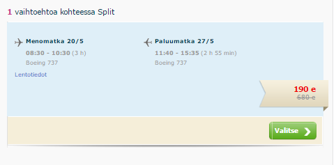 Helsingist saab soodsalt lennata Horvaatiasse 95 euroga! Lisades juurde majutuse 7 ööks 3-tärni Spliti kesklinna majutusasutuses, tuleb hind kokku 235 eurot! Lend väljub reedel!